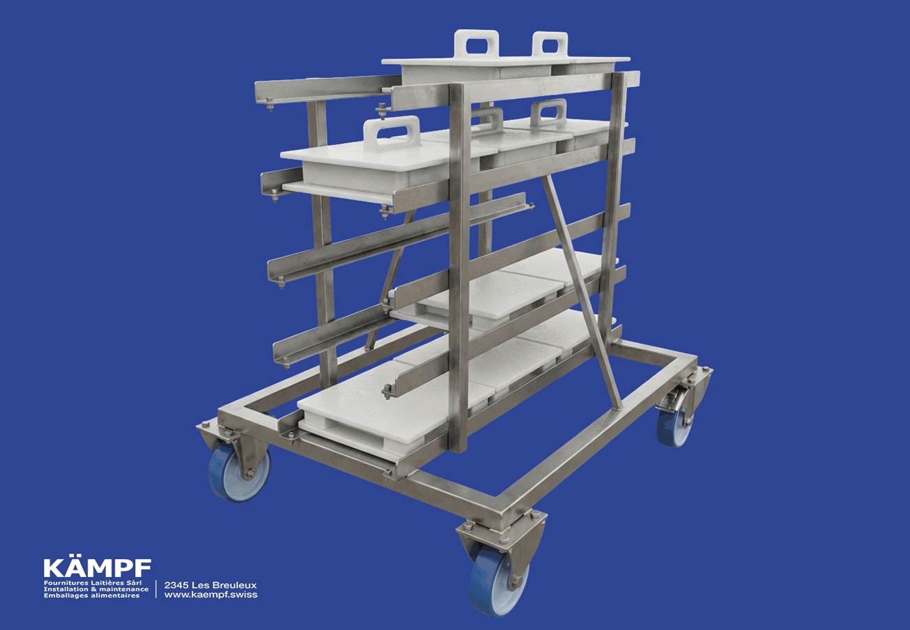 Conception de bacs de moulage sur mesure selon la quantité de lait souhaitée, avec possibilité d’y ajouter un distributeur à caillé, également sur mesure.