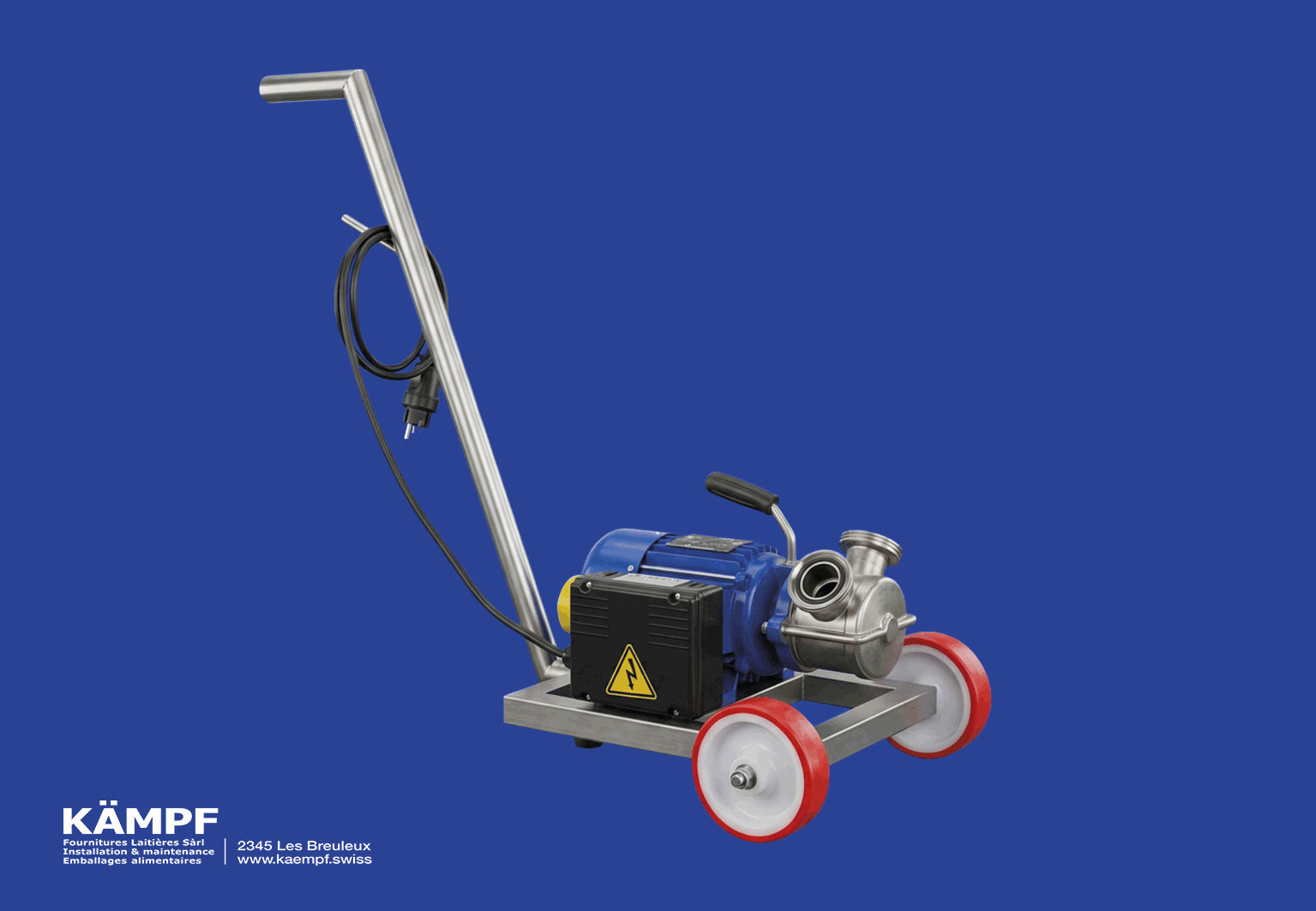 Conception de pompe à lait / petit lait, 220 V sur chariot inox.
